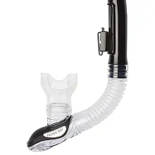 | Merkmale - Schnorchel | Abgewinkelte Luftdusche, Mundstück im Atemreglerstil, Schnellanschluss-Maskenclip, Unterer Schlauch mit Rillen |