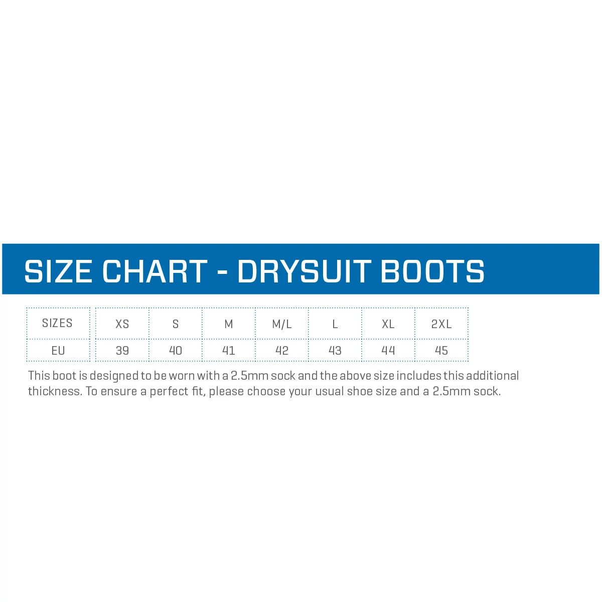 • This boot is designed to be worn with a 2.5mm sock and the above size includes this additional thickness. To ensure a perfect fit, please choose your usual shoe size and a 2.5mm sock.