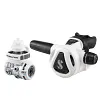 The C370 uses an air‑balanced valve design and includes an inhalation effort control knob and dive/pre‑dive lever, helping deliver consistent breathing comfort across different depths and tank pressures.