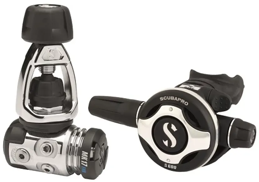La combinación de la segunda etapa líder en ventas de SCUBAPRO y la más reciente primera etapa aislada del entorno ha dado lugar a un regulador de gran fiabilidad en todas las situaciones de buceo. El MK17 EVO está totalmente protegido. Sus componentes están aislados del entorno externo lo que garantiza un funcionamiento perfecto al sumergirse en aguas frías o contaminadas. A pesar de su tamaño, más compacto que el de su predecesor, ofrece un mejor rendimiento respiratorio. Su diseño interno mejorado permite un mayor caudal desde las entradas de baja presión, que han sido reconfiguradas para mejorar la orientación de los latiguillos. La S600, dotada de una resistente carcasa de fibra de vidrio reforzada con nailon y de una tapa frontal de acero inoxidable, permite obtener el aire de forma constante y sin esfuerzo a cualquier profundidad.