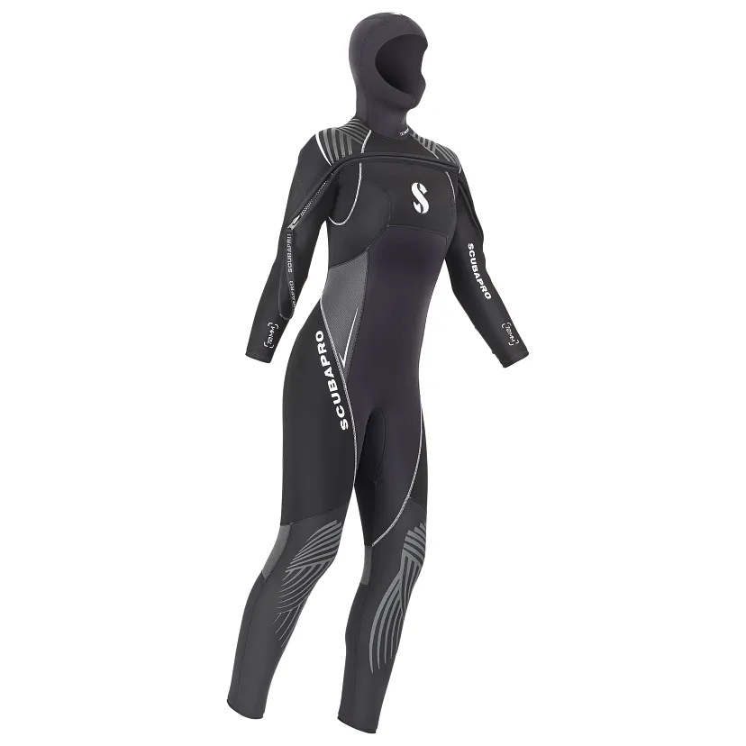 Extrêmement moderne, fonctionnelle et conçue pour la plongée en eaux froides, la combinaison Definition 7mm s’intègre entre vêtements humides et semi-étanches. Influencé par le design de la célèbre Definition 6,5mm, ce modèle est conçu en néoprène plus épais et plus extensible pour une isolation thermique et une liberté de mouvement accrues. Sa cagoule attenante isole la tête et le cou, tandis que sa fermeture frontale YKK horizontale d’épaule à épaule facilite habillage et déshabillage du vêtement sans l’aide d’un coéquipier. Sa doublure intérieure en plush ultra-confortable est désormais revêtue d’un film d’aluminium pour une excellente conservation de la chaleur. Ses manchons de poignets et de chevilles internes limitent les entrées d’eau, tandis qu’un rembourrage intégré le long de la colonne et des lombaires amortit le poids de la bouteille pour un confort accru lors de plongées prolongées. Cette combinaison offre une grande élasticité dans les parties les plus sollicitées et assure un niveau de chaleur, de confort et de résistance idéal pour les adeptes de plongée en eaux froides.
