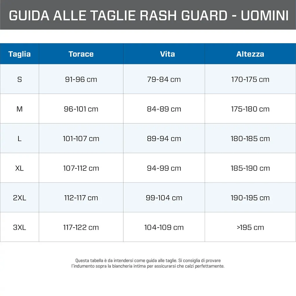 - Questo rash guard aderente è stato sviluppato per essere indossata durante le immersioni in acque tropicali, o come strato aggiuntivo sotto una muta umida. Se preferisci una vestibilità più ampia, ti consigliamo di acquistarne una di una taglia più grande.