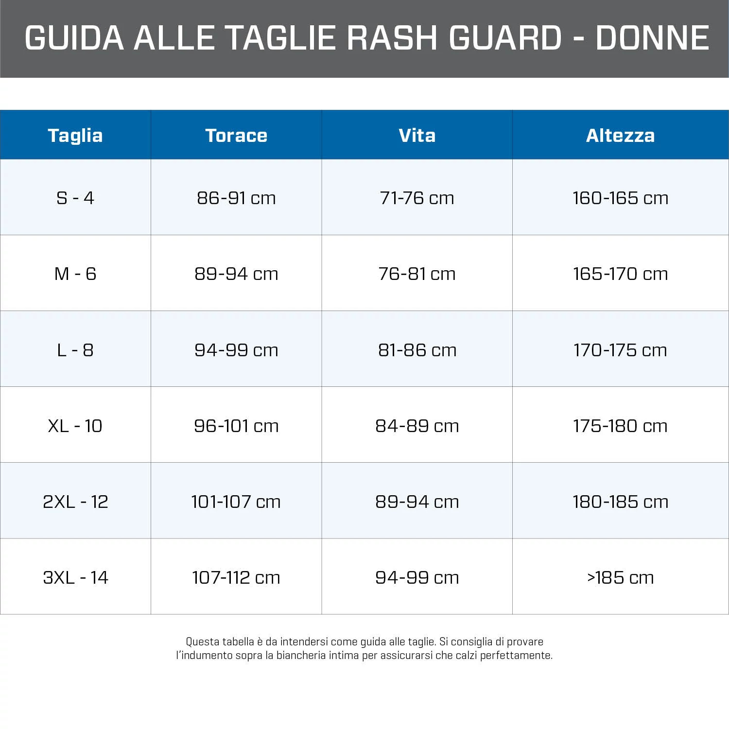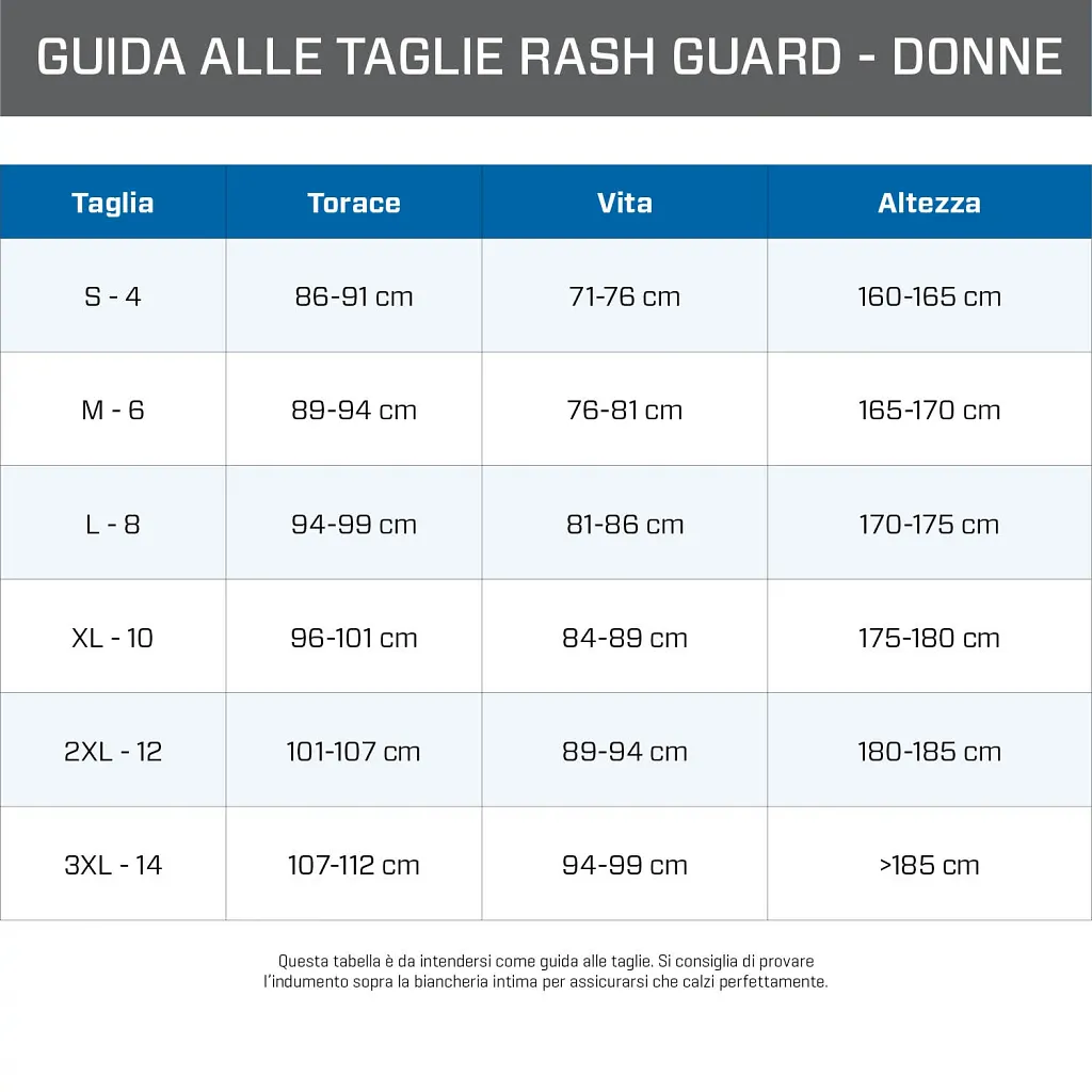 - Questo rash guard aderente è stato sviluppato per essere indossata durante le immersioni in acque tropicali, o come strato aggiuntivo sotto una muta umida. Se preferisci una vestibilità più ampia, ti consigliamo di acquistarne una di una taglia più grande.