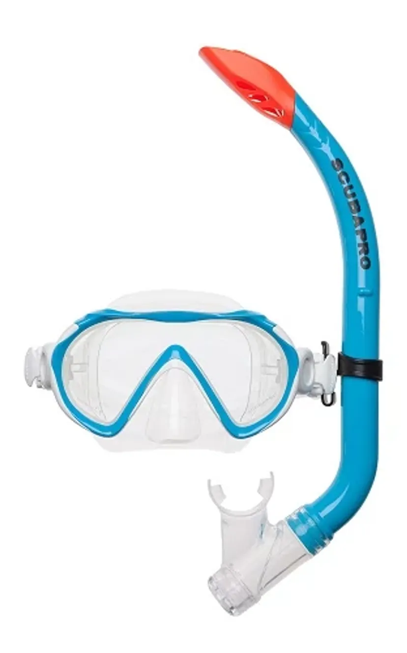 Questo set da snorkeling di alta qualità per bambini è composto da una maschera monovetro con facciale in morbido silicone e da un comodo snorkel con dry top e paraspruzzi inferiore.