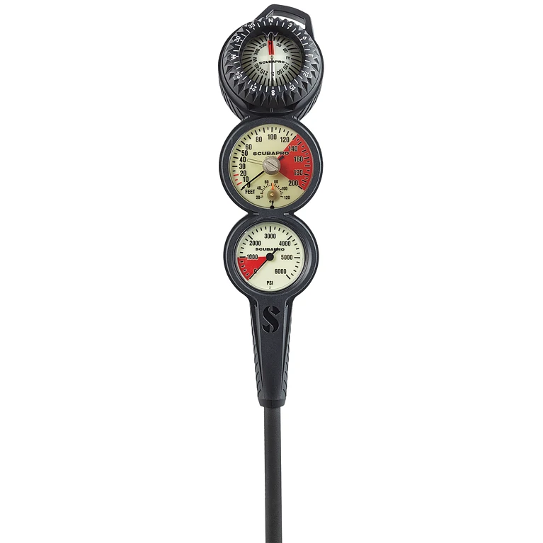 This sleek, three-gauge console combines a SCUBAPRO metal pressure gauge, depth gauge and FS-2 compass, creating an easy-to-use, at-a-glance information center.