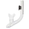Perfect for beginner and experienced snorkelers, a dry snorkel enhances your comfort and confidence in the water. The corrugated tube keeps the mouthpiece away from your face when not needed.