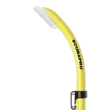 Perfect for both snorkelers and divers, a semi-dry snorkel enhances your comfort and confidence in the water. The corrugated tube keeps the mouthpiece away from your face when scuba diving.